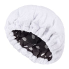 This classic black and white polka dot print compliments the simple white terry cloth, for a timeless looking Hot Head. Wear your favorite side facing out or alternate them depending on your mood.