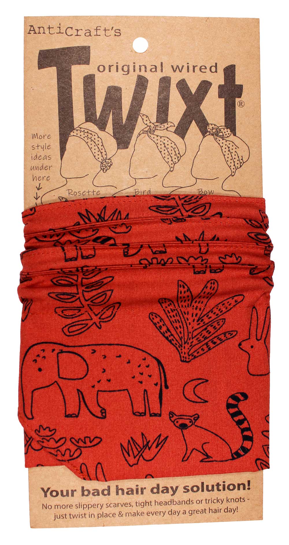 ANIMALS ON RUST ORANGE- TWIXT WIRED HEADBAND