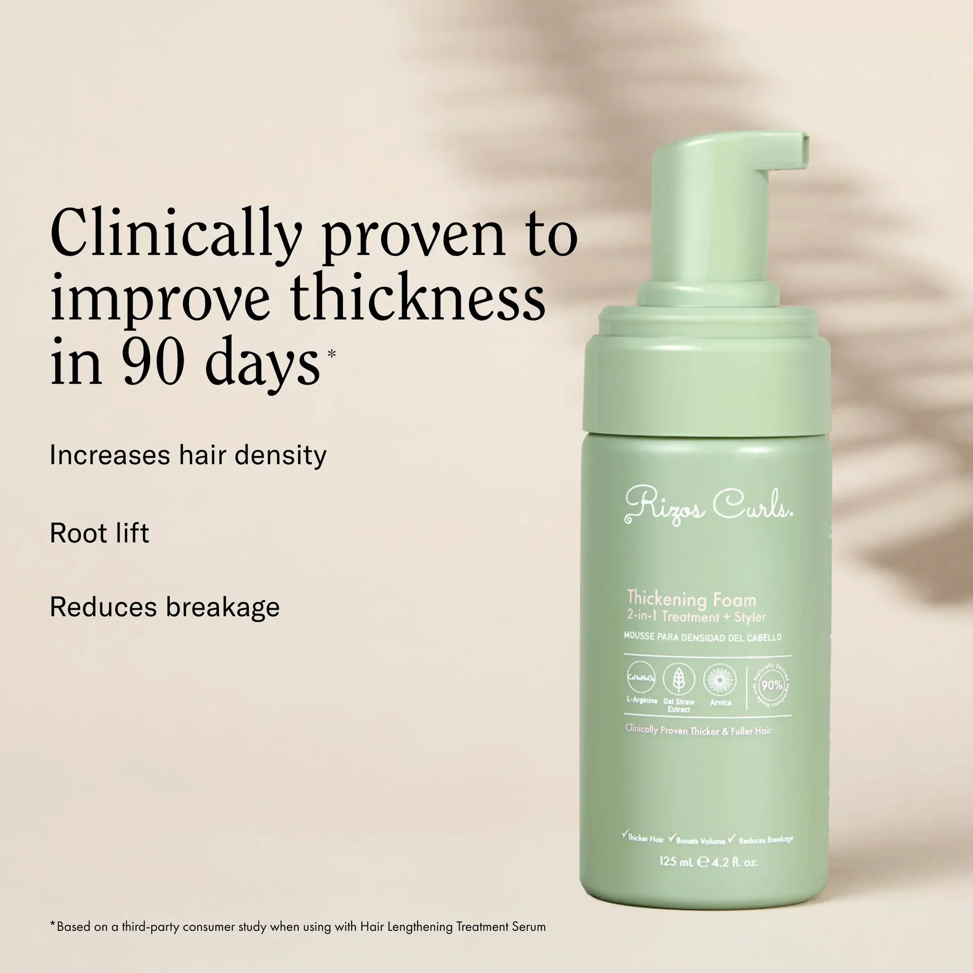 After using Hair Lengthening Treatment Serum, apply 1-2 pumps of Thickening Foam directly to scalp & roots focusing on areas where hair is thinning. Work product in using fingertips. Allow to absorb for at least 3 minutes. For optimal results, use daily with our Hair Lengthening Treatment Serum for 90 days.