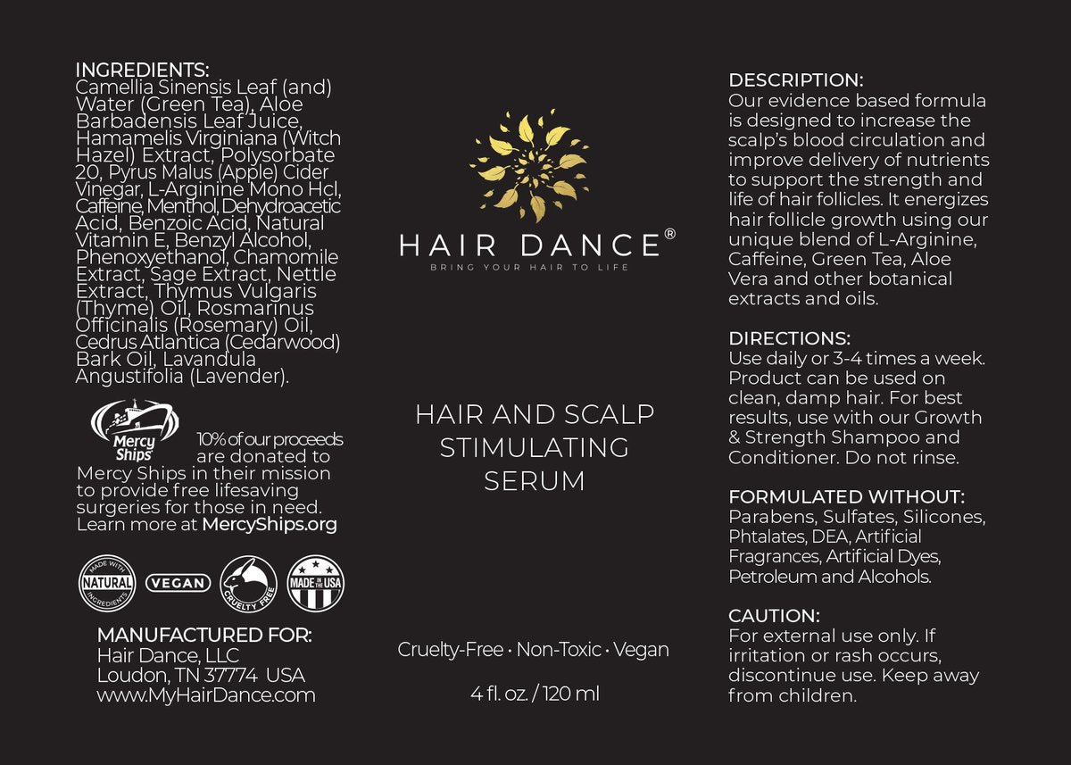 What it is: Hair Dance Hair & Scalp Stimulating Serum promotes healthy hair growth by boosting the scalp's blood circulation and energizing hair follicles to support growth. Suitable for all hair types, its all-natural enriched formula is filled with antioxidants to prevent free-radical damage of the scalp, roots, and hair. Its potent formula helps extend the life cycle of hair while increasing the growth of hair follicles.
