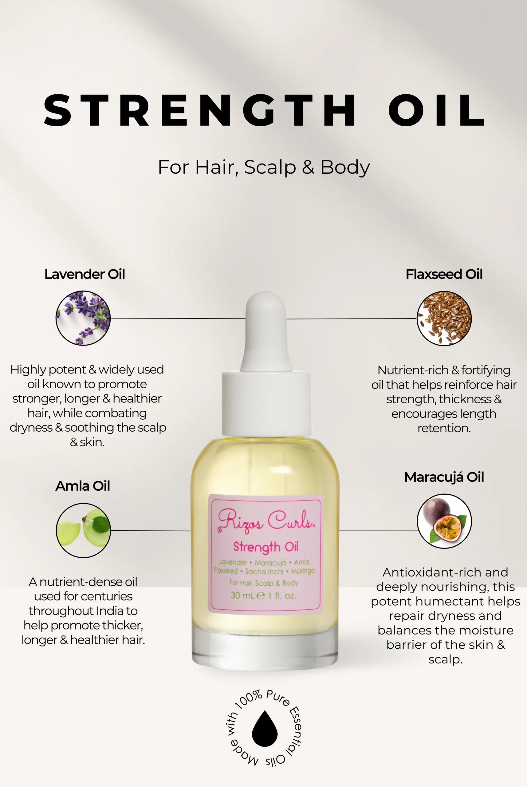 Rizos Curls uses high quality natural ingredients with high potency in all of our products.
